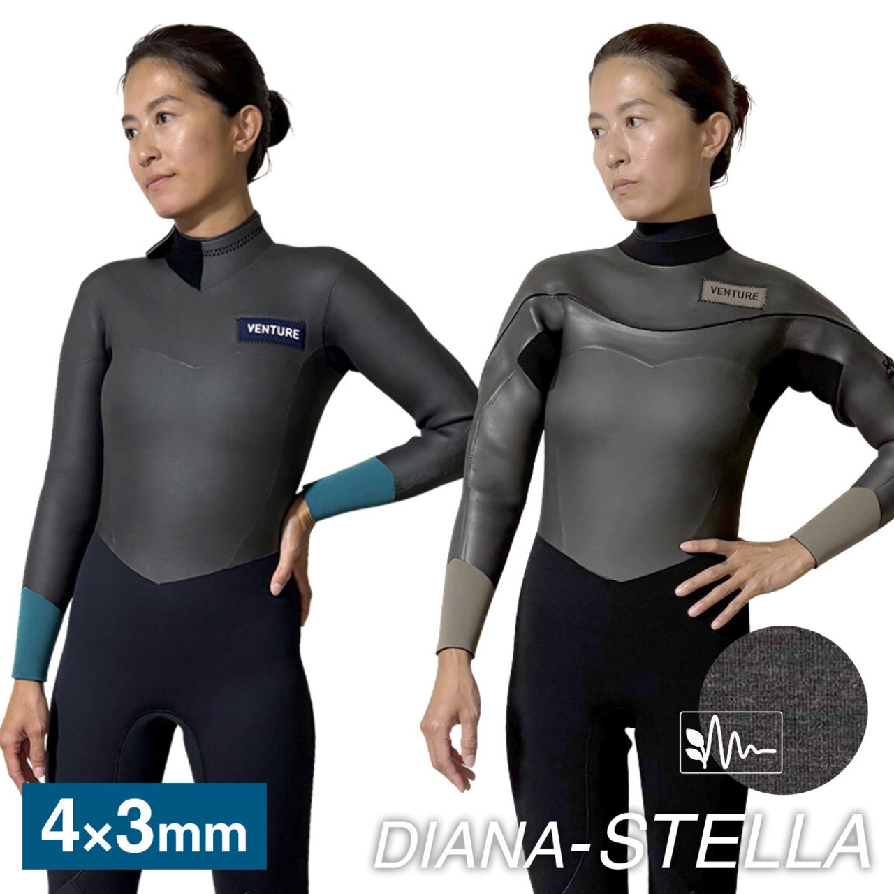 【DIANA STELLA】 4mm × 3mm ロングチェストジップ バックジップ セミドライ レディース ウェットスーツ VFW25524 VFW25534
